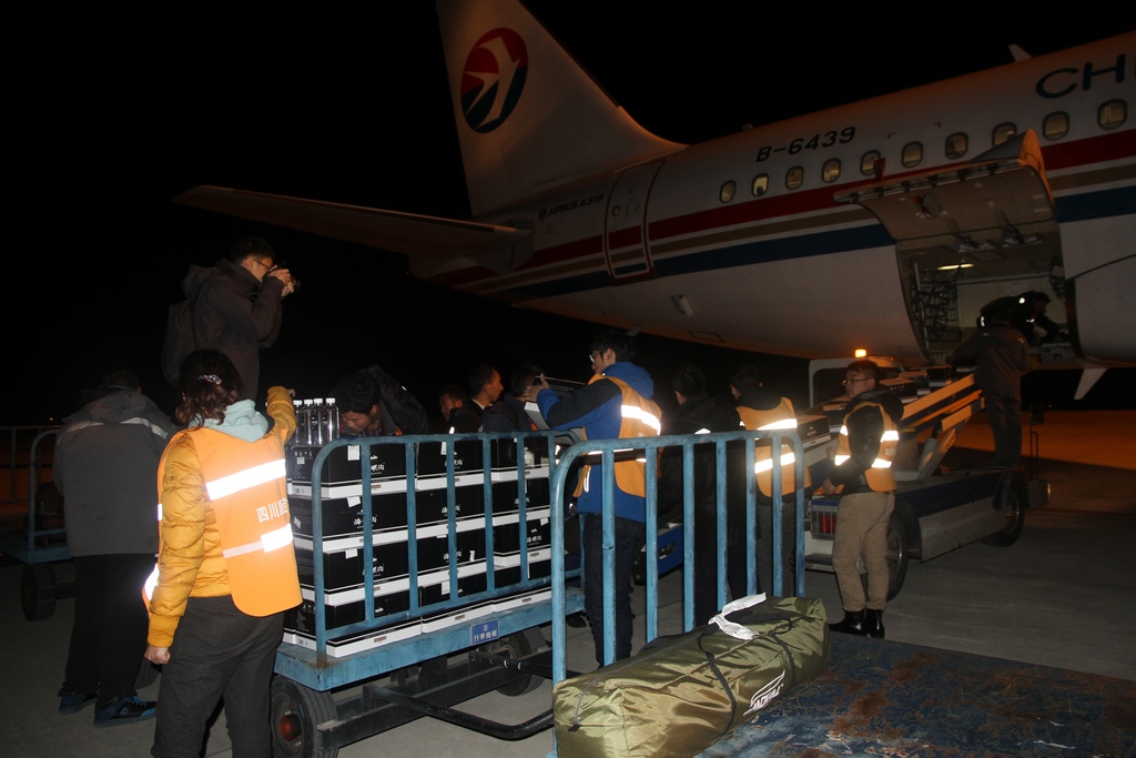 為了盡快給災區(qū)人民送去切實需要的救援物資,解決他們的臨時住所和安全飲水等問題,同時也是安撫災區(qū)人民的情緒。四川康定機場集團公司董事長譚亨帶領機場救援工作組在23日6點28分航班抵達后,以最快速度裝載好所有物資,全速趕往震中塔公鄉(xiāng)。