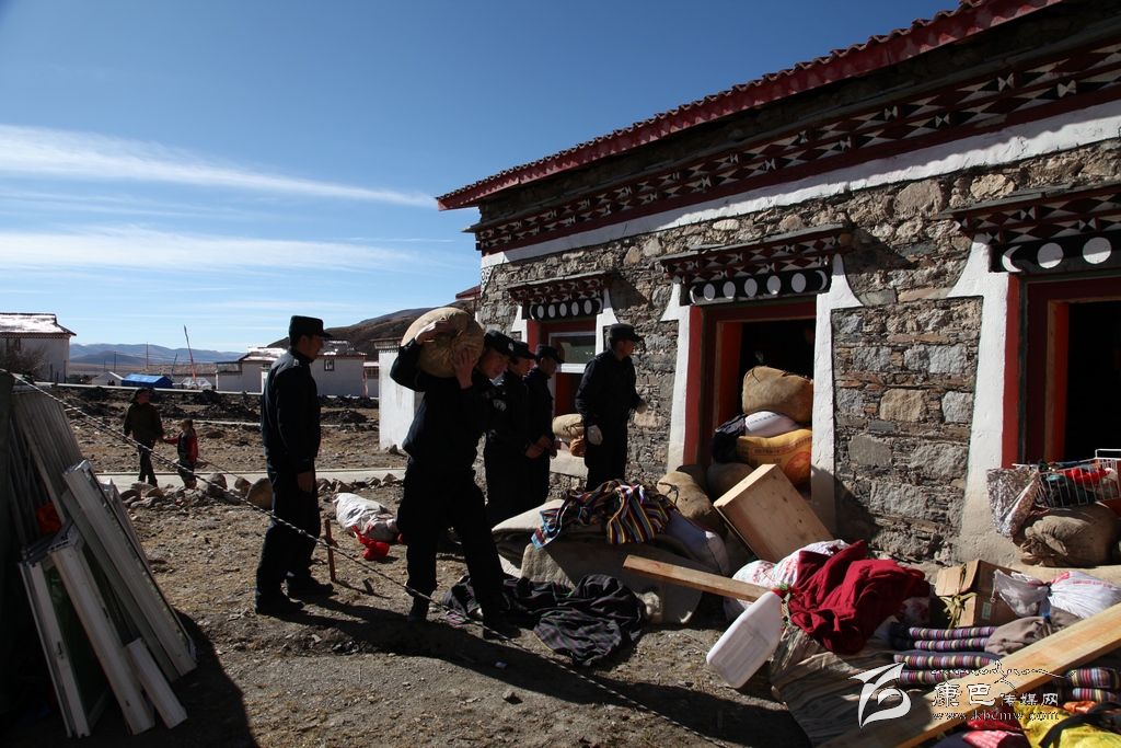 26日一大早,記者驅(qū)車趕往塔公江巴村采訪,在江巴村一戶受災(zāi)群眾家院壩內(nèi),看到了一群熟悉的聲影,他們正在幫村民巴扎轉(zhuǎn)移糧食。村民巴扎家堆放糧食的房屋外墻受地震影響裂開了幾到明顯的口子,磚瓦散落一地。主人家非常擔心房子垮了將糧食掩埋,這是他辛苦了一年的勞動成果,更是一家人過冬的口糧,正當巴扎心焦如何將這兩千余斤糧食如何轉(zhuǎn)移到安全地帶時,他們出現(xiàn)了。當他們了解到巴扎想盡快把糧食和其他物品轉(zhuǎn)移到安全地點時,他們二話不說,簡單分工后,馬上就忙開了。他們扛的扛、拉的拉、背的背、抬的抬……很快就將糧食以及其他零散物品轉(zhuǎn)移到巴扎家的安全地帶??吹竭@一切,一旁的巴扎對他們翹起了大拇指用很不流利的漢語說到:實在太感謝你們了,卡卓、卡卓……