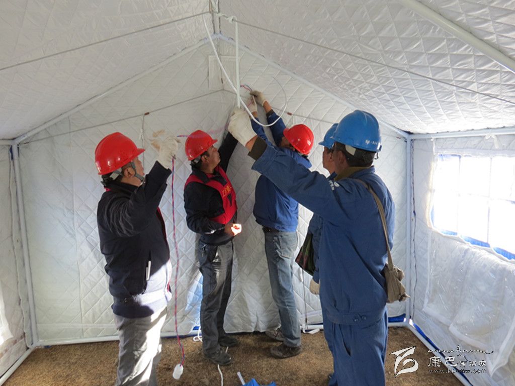 截止11月23日,蔣健帶領(lǐng)的15名職工完成了27個故障點(diǎn)搶修,為12個安置點(diǎn)、1072個帳蓬安裝了1000余個插線板、1300多個燈泡。