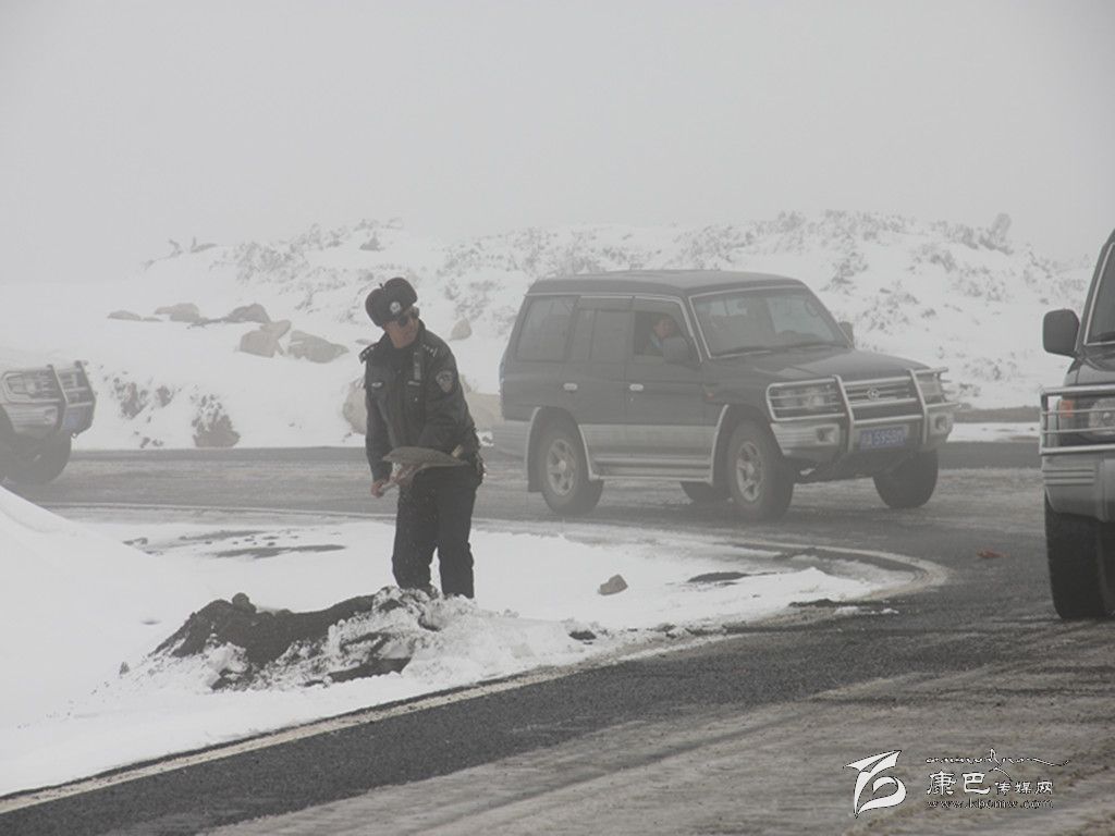 高高的折多山,氣候惡劣,有時(shí)竟七月飛雪。在風(fēng)雪中,處處可以看到王洛讓偉岸的身軀,因?yàn)橛辛怂麄兊膱?jiān)守,換來(lái)游客對(duì)甘孜交警的由衷贊嘆。