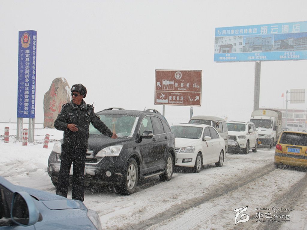 去年10月3日,華西都市報(bào)收到了讀者傳來(lái)的一張圖片,照片上的交警穿著厚厚的大衣,背景白雪皚皚。“這是我今天翻折多山的時(shí)候照的,當(dāng)時(shí)車子排隊(duì)翻山遇到堵車心里覺(jué)得毛焦火辣的,我當(dāng)時(shí)看到他站在暴雪中指揮交通,心里就像吃了定心丸,我要為這個(gè)交警點(diǎn)贊。”華西都市報(bào)記者尋著這條線索多方打探,終于聯(lián)系到了康定縣公安局交警大隊(duì)新都橋中隊(duì)長(zhǎng)王洛讓。
