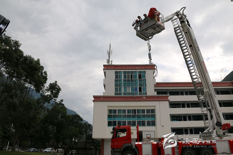 為使參訓學生更好地將此次學習到的消防知識融于實踐,消防部門還在校園操場,組織參訓學生開展了油盆火災撲救,現(xiàn)場學生紛紛踴躍報名,現(xiàn)場氣氛十分活躍。在消防官兵的指導下,學生們分為三組,利用手提式干粉滅火器進行了油盆火災撲救演練,提瓶、拔銷、對根、壓柄一氣呵成,火勢被順利撲滅。隨后,消防官兵又向?qū)W生們演示了單干線出兩支水槍滅火操,并介紹了甘孜州最尖端的消防車輛器材及裝備,組織參訓新生進行了一場32米登高平臺車高空作業(yè)體驗。按照操作規(guī)程,消防官兵協(xié)助參加體驗的學生戴好防護頭盔,扎上綁有安全繩的防護腰帶,順利登上了登高平臺。在消防官兵嫻熟的操作技術下,登高平臺勻速上升到20米高空,現(xiàn)場傳來了一陣陣驚嘆聲。