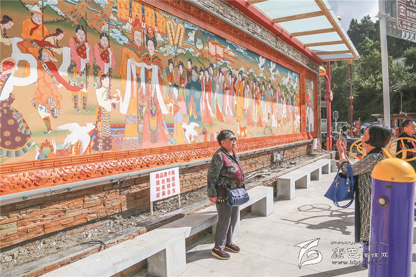 本網(wǎng)訊(孫學(xué)花/文 記者 陳楊/圖)8月3日,大型唐卡——文成公主進(jìn)藏圖在康定市公主橋全民健身場(chǎng)旁的文化墻上亮相,引來眾多市民和游客觀看,受到一致好評(píng)。