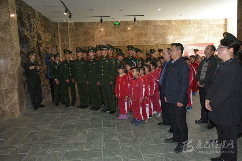隨著哀樂奏響,武警戰(zhàn)士代表抬起花圈,邁著鏗鏘有力的步伐走向烈士紀念碑,向為國捐軀的革命先烈們敬獻花圈;全體人員脫帽肅立,默哀1分鐘;兩位學生代表為大家講述兩則紅色故事。