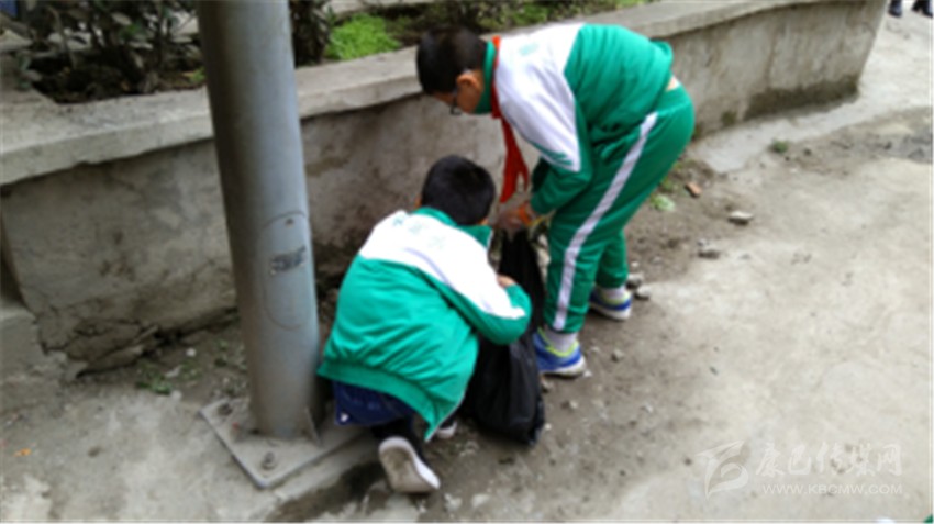 下午放學(xué)后,師生們帶著清潔工具從學(xué)校出發(fā),依次對康定中學(xué)橋頭到農(nóng)科所路段進(jìn)行了垃圾清理。雖然雨后的道路多泥濘,但是師生們不怕臟不怕累,干得熱火朝天。一個三年級的學(xué)生戴著手套掏出塞在下水溝縫里的垃圾,他對同學(xué)說:“真臭啊,我們以后一定不能亂扔垃圾了?!痹趲熒鷤兊墓餐ο拢缆纷兊酶筛蓛魞?。