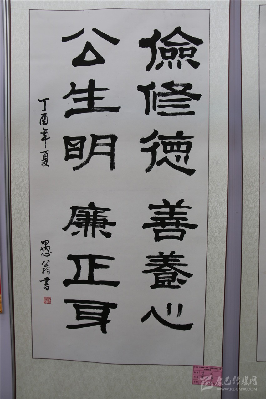 本網(wǎng)訊(記者 宋志勇 文/圖)“儉修德,善養(yǎng)心;公生明,廉正身?!薄爱?dāng)不住今天的誘惑將失去明天的幸福?!薄扒辶?/span>..........。隸書、行草、草書等一幅幅書法作品行云流水、飛揚灑脫。這是9月15日,由州紀(jì)委、州委宣傳部共同主辦,州直工委、州文明辦協(xié)辦的我州“喜迎黨的十九大?弘揚清風(fēng)正氣”主題廉政書畫展在康定劇場開展時,參與此次活動的作者以各自的方式創(chuàng)作出一件件主題鮮明的精美力作,既增強全社會反腐倡廉意識,也營造各族人民喜迎黨的十九大的濃厚氛圍。