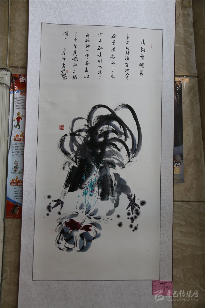 “‘松潔鶴鳴’是我親筆所繪,畫中‘松潔’表現(xiàn)的是黨員干部廉潔自律、風(fēng)清氣正的一種政治生態(tài)環(huán)境;‘鶴鳴’表現(xiàn)的是警鐘長鳴,時時刻刻向黨員干部敲敲‘鐘’。”州老年大學(xué)書法班今年70歲的胡鄧珠指作書畫作品興奮地說。