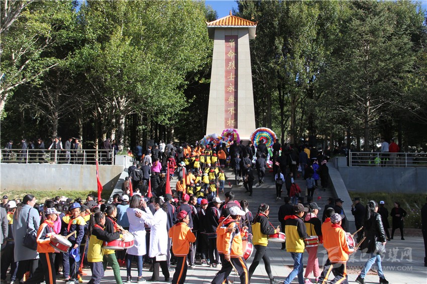 整個公祭活動莊嚴(yán)、肅穆而隆重,全體人員奏唱《國歌》,繼而少先隊代表獻(xiàn)唱少先隊歌,向烈士紀(jì)念碑敬獻(xiàn)花圈,深切表達(dá)對革命先烈的緬懷敬仰之情。