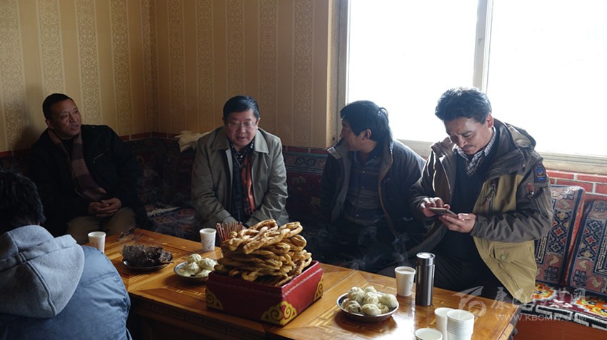 州醫(yī)院院長多吉(中)與鄉(xiāng)村干部共謀發(fā)展大計。