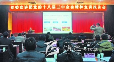12月25日,省委宣講團(tuán)在海螺溝景區(qū)宣講黨的十八屆三中全會(huì)精神,由省委講師團(tuán)教授韓旭作宣講,海螺溝景區(qū)景區(qū)管理局、磨西鎮(zhèn)、新興鄉(xiāng)副科實(shí)職以上干部,21個(gè)行政村村兩委班子成員,部份州、縣人大政協(xié)代表,離退休同志代表和三老干部代表,省州屬各派駐機(jī)構(gòu)負(fù)責(zé)人以及部分旅游企業(yè)負(fù)責(zé)人聆聽了報(bào)告。圖為報(bào)告會(huì)現(xiàn)場(chǎng)。(李娟 攝影報(bào)道)