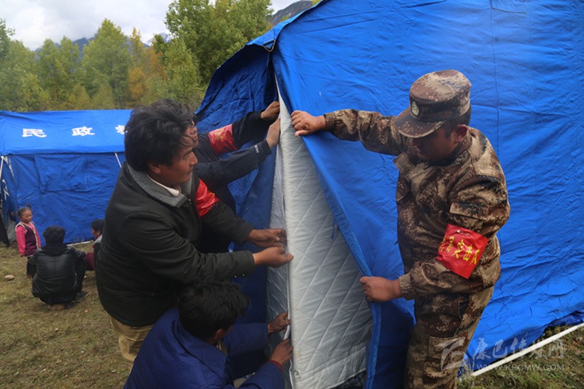 走進(jìn)炯青洞臨時(shí)安置點(diǎn)27號(hào)帳篷,見到村民康珠正在整理被蓋。她介紹說,縣里給每戶村民發(fā)了5床棉被,發(fā)放了礦泉水、方便面、餅干,發(fā)放了常用藥,還拉上了電,每天晚上能用上4個(gè)小時(shí)的電,我們睡了,還有黨員干部輪流值班?!包h和政府為我們想得很周到,讓我們吃得飽穿得暖還睡得安全。”