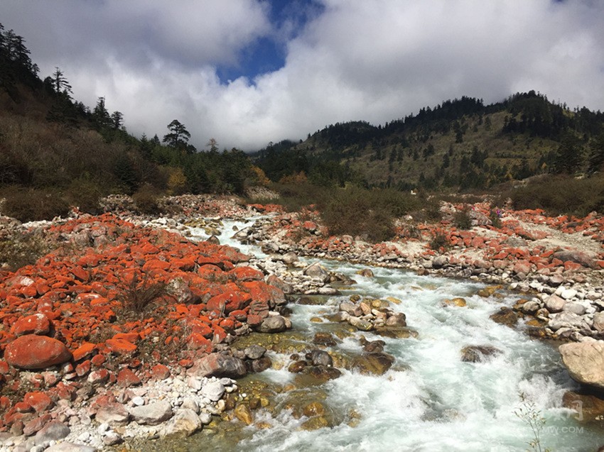 曾經(jīng)有科學(xué)家將海螺溝的紅石帶出去研究,結(jié)果剛下飛機,發(fā)現(xiàn)石頭上的紅色褪了,因為空氣質(zhì)量不好,導(dǎo)致石頭上的喬利橘色藻無法生存。