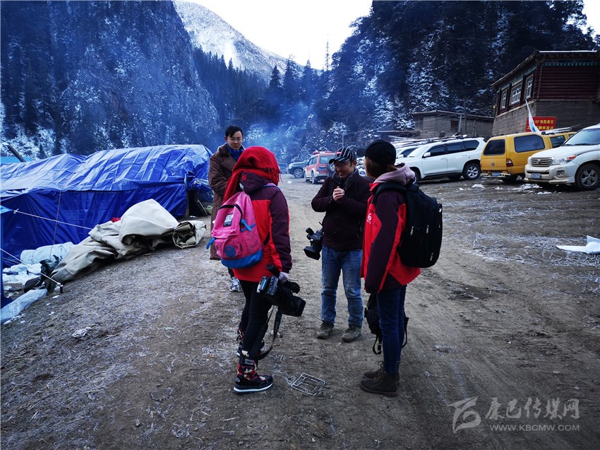 11月6日晚,甘孜日報記者馬建華、張磊、余秋林和州廣播電視臺副臺長何良忠、記者洛嘎、肯布及白玉電視臺記者連夜趕赴則巴村中轉(zhuǎn)站。26公里的崎嶇山路,冰雪道危險重重,坡陡彎急,司機(jī)憑借經(jīng)驗在坡度60度以上的暗冰道上行駛,經(jīng)過兩個多小時的艱難行進(jìn),采訪組終于入住前方救災(zāi)組搭建的救災(zāi)帳篷。深夜,大雪紛揚,帳篷里寒氣襲人。帳篷四周,狗叫聲不止,一條狗鉆進(jìn)帳篷,蜷縮在記者床鋪旁邊,因為太冷,記者們不忍心將它驅(qū)離。11月7日,白格堰塞湖庫容量達(dá)到2.71億立方米,白格堰塞湖形勢嚴(yán)峻,嚴(yán)重威脅我州金沙江下游群眾生命財產(chǎn)安全。一大早,10多公分厚的大雪扮美了村莊,卻給機(jī)具、救災(zāi)物資、救援人員進(jìn)出等帶來極大困擾?!拔覀兊耐诰驒C(jī)司機(jī)在山上被大雪困了一夜,徒步到中轉(zhuǎn)站休息了三個小時又到山上去作業(yè)了,你們應(yīng)該去采訪一下。”州政府副州長何康林說。