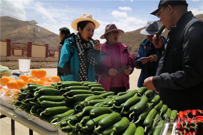 德格中扎科農(nóng)業(yè)產(chǎn)業(yè)園有機(jī)蔬果引得參觀考察者競(jìng)相品嘗。