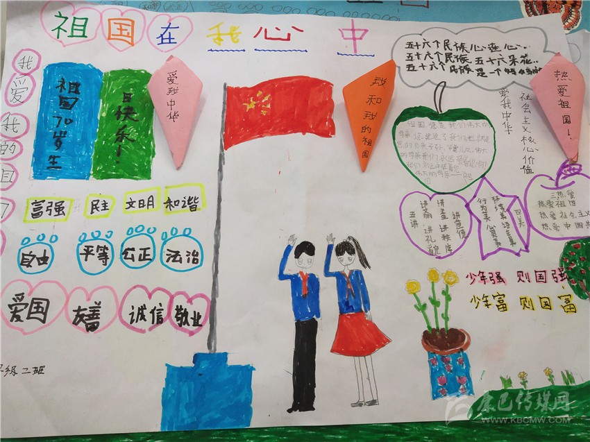 活動在該校三至六年級學(xué)生中開展,老師為學(xué)生提供創(chuàng)作所需材料,讓學(xué)生自由想象發(fā)揮,把自己心中對祖國的熱愛躍然紙上。各班精心組織,不到兩個小時的時間,一幅幅主題鮮明、內(nèi)容豐富、色彩明快的手抄報誕生了,孩子們的作品充滿了對祖國深深的愛與衷心的祝福。何俊鑫 文/圖