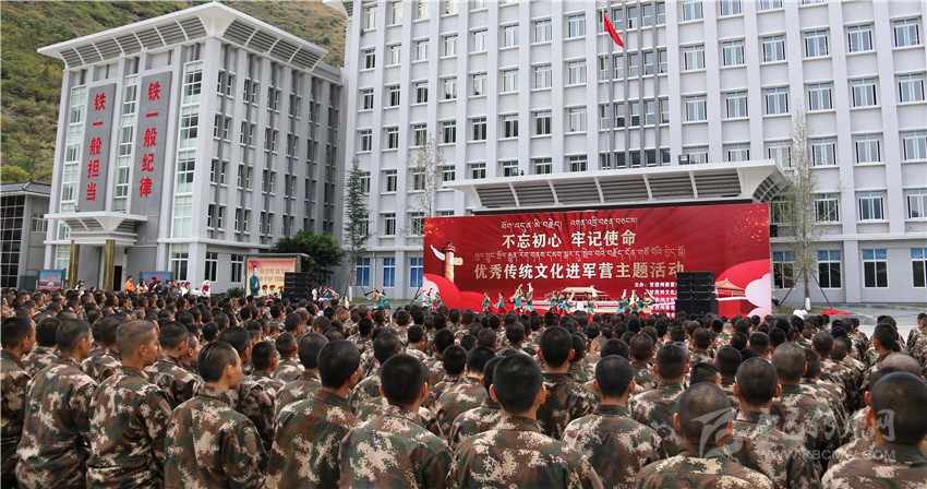 本網(wǎng)訊 11月9日下午,由州委宣傳部、州文化廣播電視和旅游局主辦,州文化館、州委黨史研究室、州圖書(shū)館承辦的“不忘初心、牢記使命”優(yōu)秀傳統(tǒng)文化進(jìn)軍營(yíng)主題活動(dòng)走進(jìn)武警甘孜支隊(duì)。州民族歌舞團(tuán)的歌手和演員們齊聚軍營(yíng),為官兵們送上了一場(chǎng)精彩絕倫的文化盛宴。