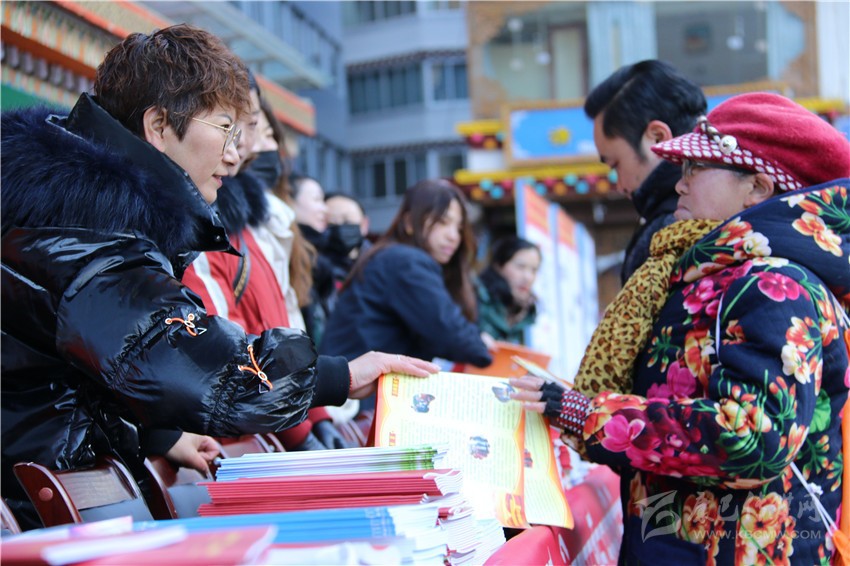 活動現(xiàn)場,工作人員為市民發(fā)放民族團結(jié)進步宣傳品、民族團結(jié)進步藏漢雙語宣傳教育讀本、宣傳畫、宣傳折頁、宣傳掛歷、《中國民族報》甘孜州民族團結(jié)專刊、《民族》雜志甘孜州民族團結(jié)專刊等各類宣傳資料9800余份(本),擺放展板30個。來自丹巴縣的仁真說:”現(xiàn)在的幸福生活離不開偉大的中國共產(chǎn)黨的領導,也離不開全國各族人民共同團結(jié)奮斗、共同繁榮發(fā)展?!?/p>