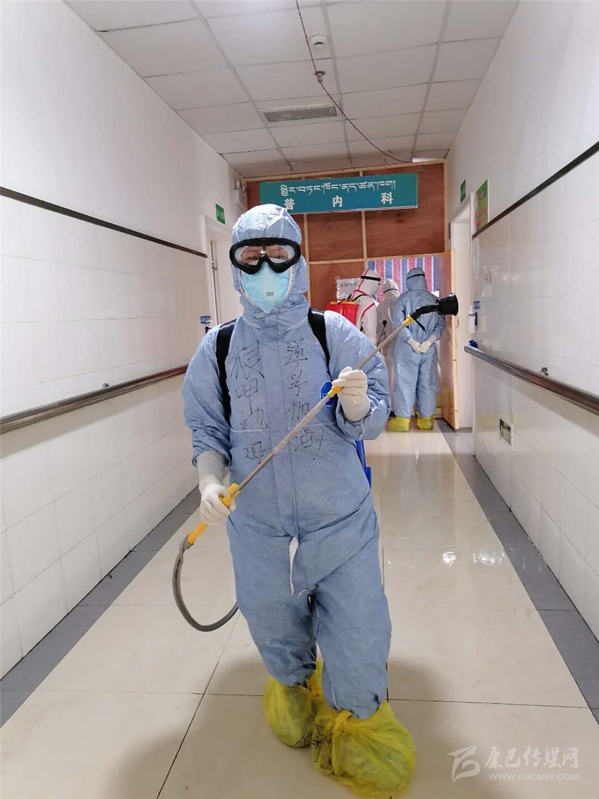 除了日常護理,根呷她姆的還要負責每日病房的消毒工作、垃圾清理以及清潔衛(wèi)生工作?!跋竟ぷ鞲裢庵匾?,必須做到不漏一個死角?!备人窂娙讨?4消毒液刺激引起的嗆咳及生活垃圾引起的惡心發(fā)嘔,一絲不茍,任勞任怨,做好每一天的消殺清潔工作,讓病毒無處遁形。在同事面前她是護士長、家長,在病人面前,她是護士、護工、清潔工、家屬、心理老師……根呷她姆每天在各種角色間轉(zhuǎn)換自如,不怕臟、不怕累、不怕苦,拼盡全力只為打贏這場沒用硝煙的戰(zhàn)爭!