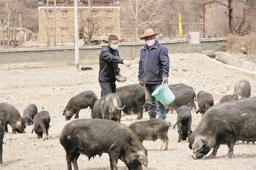 2015年,澤仁瓦吉的生活出現(xiàn)了轉(zhuǎn)機(jī),得知他在村里養(yǎng)過豬,且因家中老人生病治療欠下了不少外債的情況后,鄉(xiāng)領(lǐng)導(dǎo)、包村干部和幫扶責(zé)任人幾次三番找到他,和他談心嘮家常,鼓勵他繼續(xù)養(yǎng)殖藏香豬,并給他帶來了產(chǎn)業(yè)發(fā)展的好政策。