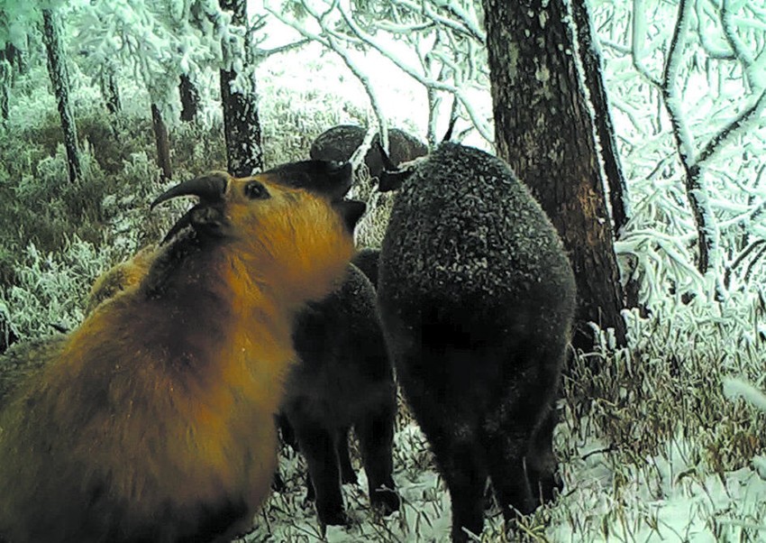“隨著棲息地生態(tài)保護力度加大,越來越多的珍稀動物出現(xiàn)在了監(jiān)控鏡頭里。”王磊表示。除了雪豹,記者在紅外線相機拍攝的影像資料里還看到:大熊貓在雪地悠閑地踱步;巖羊在嗅聞覓食;綠尾虹雉伸長脖子?xùn)|張西望,警惕地打量周圍;扭角羚帶著幾只小寶貝出現(xiàn)在雪峰上,小扭角羚散步覓食,“家長”也警惕地望著周圍……