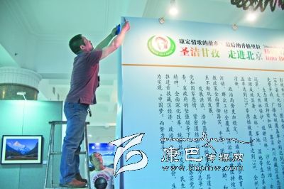 本網(wǎng)訊(記者 秦松 文/圖)昨(4)日下午,圣潔甘孜·走進北京——四川甘孜藏區(qū)文化旅游宣傳周系列活動的所有布展工作已接近尾聲,今日在民族文化宮廣場正式啟動,屆時我州精心準備的攝影圖片展、民族文物展、藏區(qū)民族音樂會等多種形式的展演,將向北京市民展現(xiàn)一場原生態(tài)的視聽盛宴。此次活動得到中共中央政治局委員、中央書記處書記、中宣部部長劉奇葆的親切關(guān)懷和大力支持,作出重要指示并批轉(zhuǎn)國家廣電總局、北京市委宣傳部、四川省委宣傳部和中宣部新聞局具體辦理“圣潔甘孜·走進北京”新聞報道工作。同時民族文化宮也對本次活動給予大力支持,加強了安全保衛(wèi)工作,對基礎(chǔ)設(shè)施進行了維修等,西單文化廣場LEDT免費播放甘孜州的宣傳片。