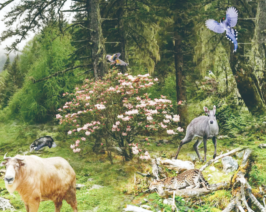 同時,全館尤其注重展覽語言的可視化轉(zhuǎn)化,像百余種動植物標(biāo)本通過或?qū)嵨锘蚍抡婺P?、或科學(xué)手繪插圖或科普互動展項的方式直觀、生動、趣味地進(jìn)行展示??傊暩律娇赏豢杉暗摹吧裥砸幻妗痹跈淮熬吧钪锌梢?,“貢嘎精靈”的“生命密碼”在仿真生境中揭示,漫長地史演化進(jìn)程在巖石標(biāo)本中顯現(xiàn);更為重要的是,數(shù)十年的保護(hù)管理成果斐然并貫穿全館。