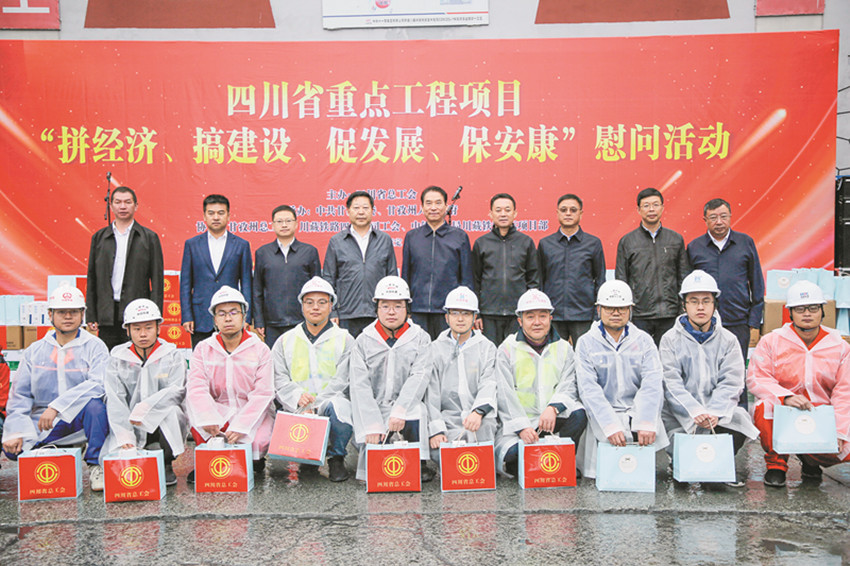 省委常委、統(tǒng)戰(zhàn)部長趙俊民(左五),州委書記沈陽(右四)等領導赴甘孜州重點工程項目開展“拼經(jīng)濟、促發(fā)展、保安康”慰問活動。