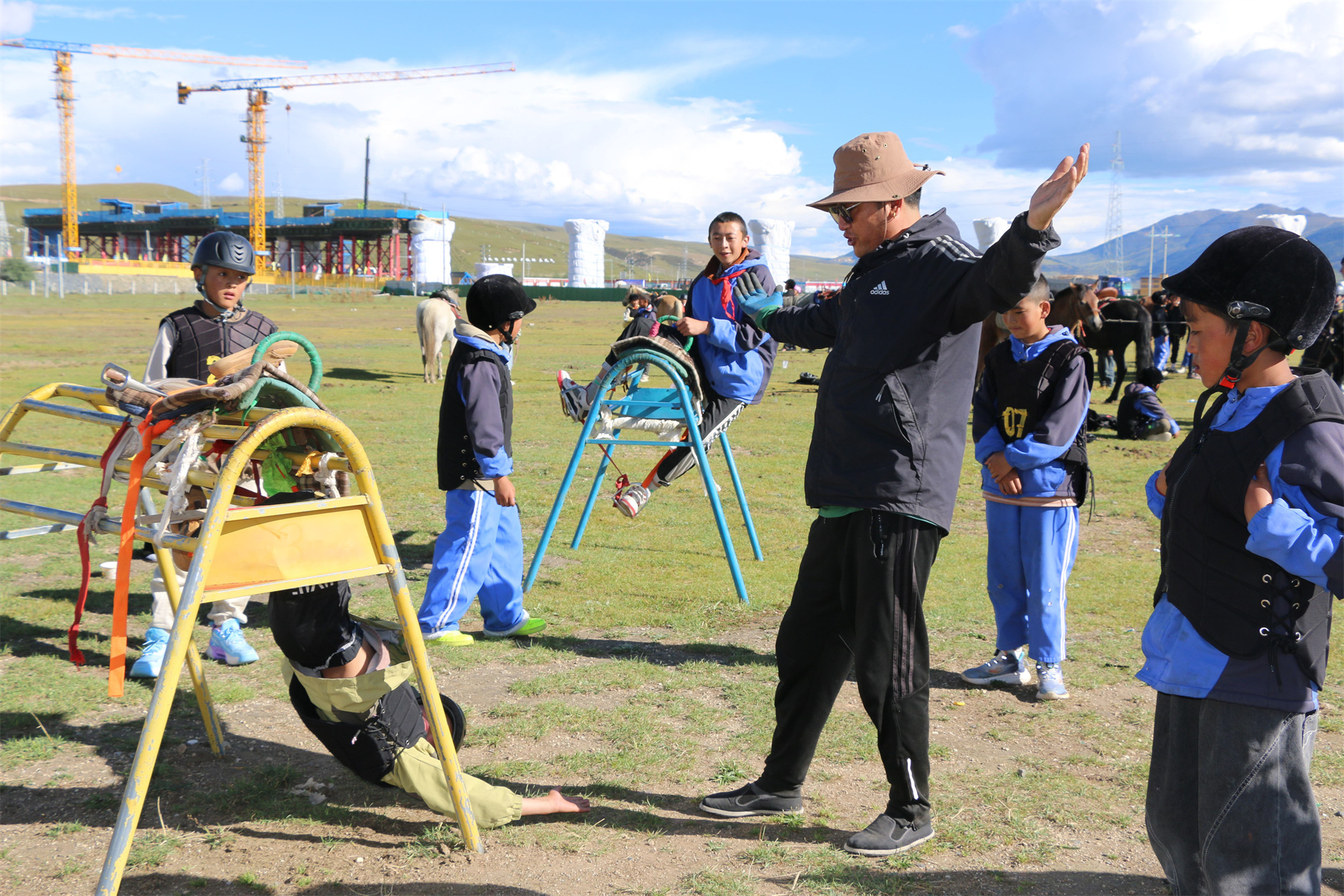 本網訊 9月2日,在理塘縣“八一”賽馬教訓基地,一場獨具一格的教學活動正在戶外有序開展,50多名中小學生正在興致勃勃的進行上馬、下馬和騎馬等馬術技巧訓練。