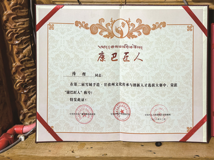 降措榮獲“康巴匠人”證書。