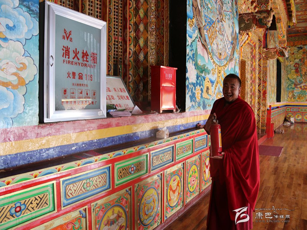 “僧人們每天在這里修行和生活,對我們僧人來說,這個廟就是我們的家,我們就是廟的主人。寺廟的防火安全我們義不容辭。”每天傍晚時分,鄉(xiāng)城縣桑披寺的義務防火隊隊長則曲迪迪便帶領(lǐng)3名隊員依次查看各經(jīng)殿堂的酥油燈、哈達、經(jīng)書之間擺放距離是否符合要求,消防器材、設(shè)施是否完好有效,各廳堂安全疏散通道是否暢通等,排查寺廟火災安全隱患。