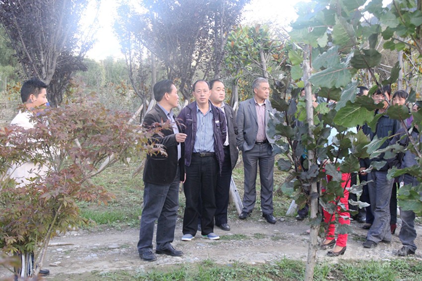 代敬濤和局領(lǐng)導(dǎo)查看苗木長勢情況。