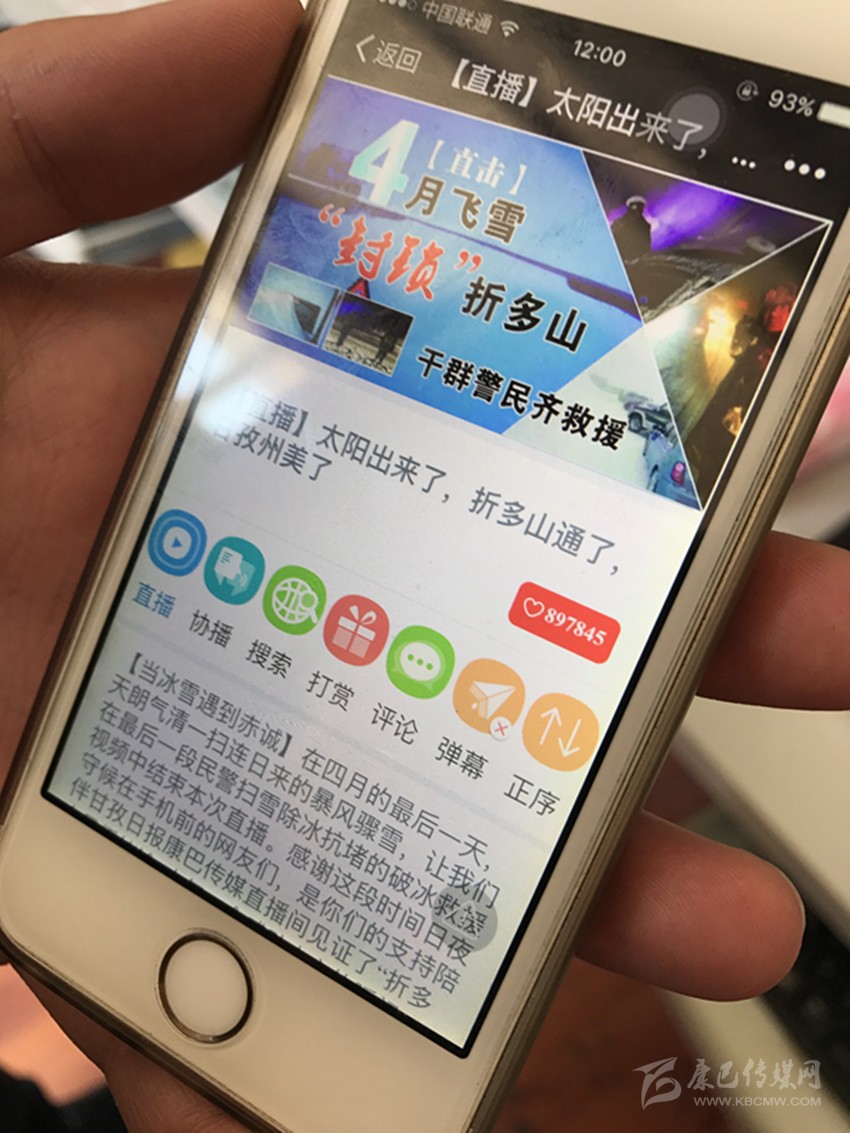 5月2日,隨著5.1小長(zhǎng)假結(jié)束,甘孜日?qǐng)?bào)對(duì)折多山突降大雪、引發(fā)交通堵塞的立體式報(bào)道告一段落,作為突發(fā)災(zāi)害性天氣,甘孜日?qǐng)?bào)行動(dòng)迅速,傳統(tǒng)媒體、掌上直播、康巴微信、甘孜發(fā)布等全媒體齊上陣,掌上直播《4月飛雪“封鎖”折多山,干群警民齊救援》,以其即時(shí)消息、圖片、視頻等海量信息,引發(fā)點(diǎn)擊“狂潮”,不到兩個(gè)小時(shí),點(diǎn)擊量即超過35萬人次,至小長(zhǎng)假結(jié)束,點(diǎn)擊量近百萬人次;康巴傳媒微信《4月飛雪,千人馳援》點(diǎn)擊量超12萬人次;甘孜日?qǐng)?bào)社對(duì)折多山大雪現(xiàn)場(chǎng)立體交叉式直播被新華社、中國(guó)新聞網(wǎng)、華西都市報(bào)封面新聞、網(wǎng)易新聞?lì)l道等州外媒體分別轉(zhuǎn)載或引用相關(guān)報(bào)道。我州應(yīng)急措施有力、有序,得到眾多媒體和網(wǎng)友紛紛點(diǎn)贊。州委常委、宣傳部長(zhǎng)相洛稱贊甘孜日?qǐng)?bào)在這次直播中,行動(dòng)迅速、引導(dǎo)有力,既客觀報(bào)道了突發(fā)性災(zāi)害天氣對(duì)我州交通和旅游帶來的不利影響,更突出報(bào)道了我州和康定市采取的各項(xiàng)應(yīng)急措施,是一次媒體融合的有益嘗試。