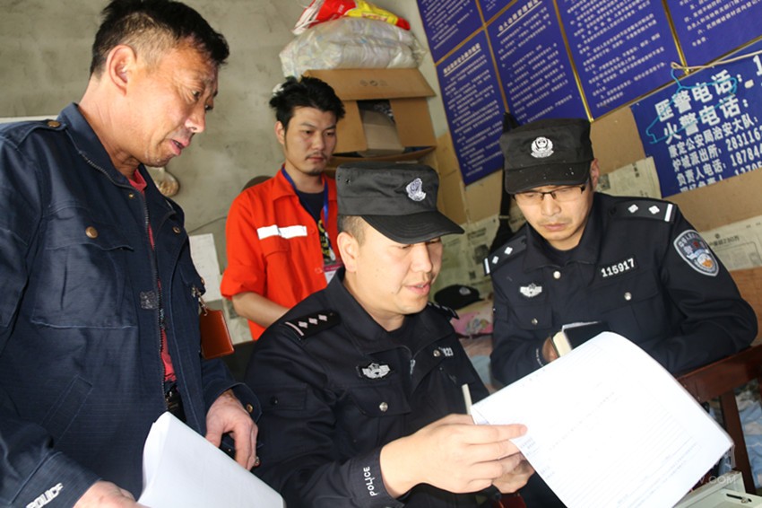 康定市公安民警檢查爆破公司安全措施。本報(bào)記者 馬建華 攝