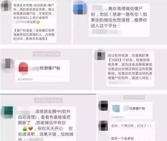 不少網(wǎng)友的微信都會收到類似“xxx你好,清理下朋友圈,效果不錯。真是不清不知道,一清嚇一跳。需要清理可加微信***”這樣的信息,表示可以通過專業(yè)手段找到所有刪除、拉黑、或屏蔽自己的“僵尸粉”,清理微信的聯(lián)系人,可以“釋放手機內(nèi)存”。