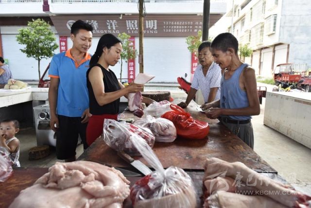 8月15日,南部縣長坪鎮(zhèn)農(nóng)貿市場,正在買肉的周強善。攝影 張可凡