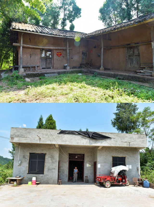 新舊家對比圖。上圖為周強善家以前的舊屋,下圖為現(xiàn)在鋼混結構的新家。攝影 張可凡