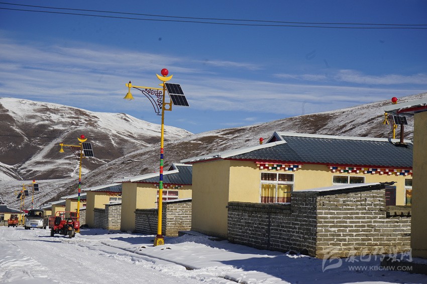 11月20日,色達(dá)縣下起了大雪,色柯鎮(zhèn)安康社區(qū)一棟棟整齊劃一的藏式小別墅炊煙裊裊,在藍(lán)天的映襯下顯得格外漂亮,新修的水泥路通到家家戶戶,106戶牧民不久前剛搬進(jìn)新房。