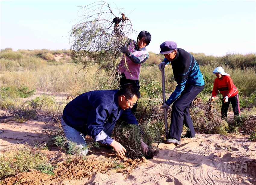 “后來(lái)我想開了,我既然不懂,就求助于懂的人?!睆垜?yīng)龍說(shuō)。他走訪了許多高校和科研院所,拜訪過(guò)許多專業(yè)人士。一位中科院專家告訴張應(yīng)龍,在沙漠里種樹不能盲目,一定要先把水保住,這樣土壤中的養(yǎng)分才不會(huì)流失,種樹的成活率才能高。同時(shí)還要種混交林,喬灌結(jié)合。這讓張應(yīng)龍茅塞頓開。