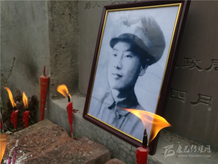 擺上遺像,按照民間習(xí)俗插上香燭、燃起紙錢,火光映照下,身著軍裝的烈士張世光英氣逼人。膝頭沉重跪下,頭顱深深觸地,烈士張世光的侄子張會臣早已泣不成聲:“大伯,我來看您了;爸爸身體不好不能來了,他讓我告訴您,我們想您啊,想了67年啊!”