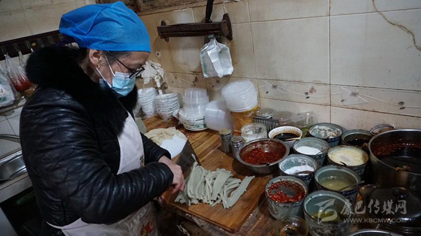 打開(kāi)門(mén)店,鋪好案板,取出昨晚“拷”好的涼粉,以快刀嫻熟將其切條,清點(diǎn)一下碗筷,在手機(jī)端打開(kāi)“餓了么”App等待客人訂餐的信息……。上午8點(diǎn),53歲的辜良虹又在對(duì)傳統(tǒng)味道的雕琢中,開(kāi)啟了開(kāi)心的一天。這12年來(lái),大多數(shù)康定市民的味蕾上,都留下了這種開(kāi)心的記憶。