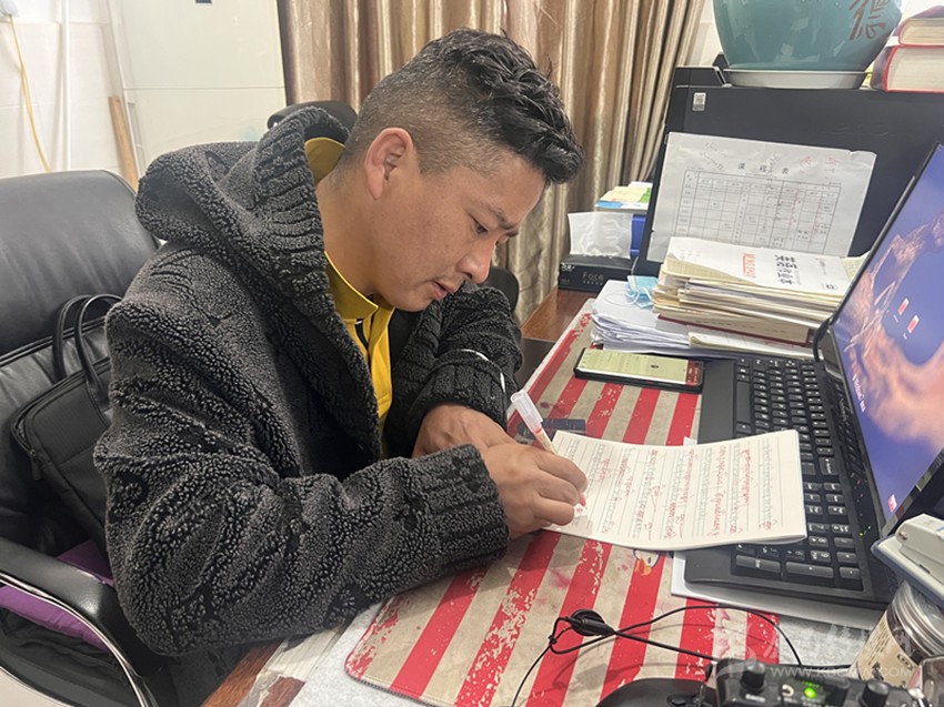 “尼瑪老師不僅對(duì)學(xué)生的學(xué)習(xí)生活關(guān)懷備至,作為任課教師,我們常??吹剿谛菹r(shí)間認(rèn)真?zhèn)湔n。他會(huì)聲情并茂地大聲誦讀精心準(zhǔn)備的課件,大家都覺(jué)得很有趣,學(xué)生學(xué)習(xí)的積極性也提高了。他批改作業(yè)也非常認(rèn)真,給每一位同學(xué)寫(xiě)的評(píng)語(yǔ)都用心用情。他是真的是用全部身心來(lái)對(duì)待工作,不愧是一名優(yōu)秀的老師?!辈稍L(fǎng)過(guò)程中,筆者偶遇了援建教師廖俊希,談起對(duì)章拉尼瑪?shù)挠∠?,廖俊希的評(píng)價(jià)細(xì)致而中肯。