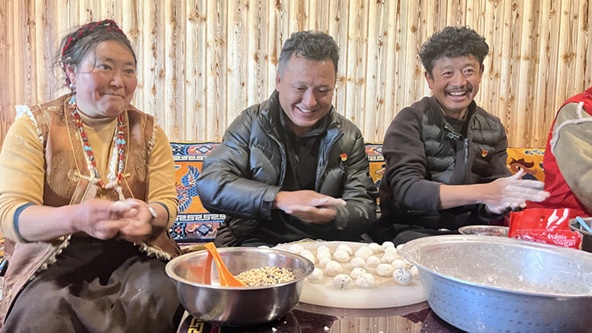 “今天是元宵節(jié),我們專門來看你們了,祝你們一家元宵節(jié)快樂!”話語間,康珠來到了廚房,與普布達瓦一家共同烹制了一桌色香味俱全的團年飯。隨后,大家圍坐一桌暢談家常,分享著各自的生活經(jīng)歷、點點滴滴的趣事以及未來的規(guī)劃與夢想。
