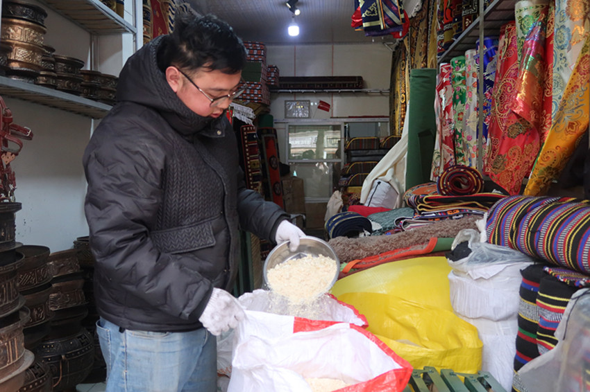 對(duì)于馬建文來(lái)說(shuō),像尼瑪這樣的“回頭客”還真不少,在與客人們打交道的過(guò)程中,獨(dú)在異鄉(xiāng)的他感受到了道孚群眾的溫暖、團(tuán)結(jié)和互助?!耙郧芭純河腥藖?lái)店里‘搗亂’,附近的居民得知此事后,主動(dòng)站出來(lái)幫助我,告訴大家各民族親如一家,要心手相連、和睦互助?!倍嗄赀^(guò)去,馬建文至今仍清晰地記得,店鋪剛開(kāi)業(yè)時(shí),道孚兒女給予他的暖心幫助。