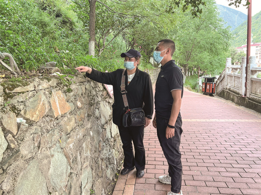 環(huán)衛(wèi)工人正在清掃阿里布果步游道。