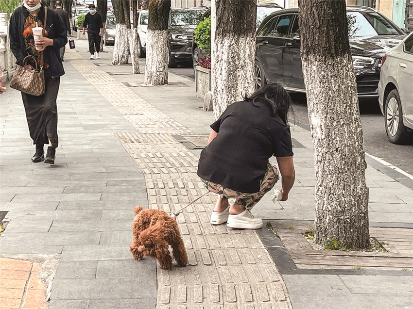這條路為何狗糞便清掃不完?“主要還是狗的主人不自覺!”王孃孃直言不諱,“現(xiàn)在生活條件好了,養(yǎng)狗的居民較多,有人甚至一下牽出四五條狗來遛。有些人會及時清理并帶走處理,但有些素質(zhì)低的人就不會?!?/p>