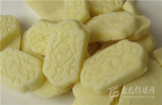 藏族酥酪糕是藏族的著名糕點(diǎn),在藏族同胞的家里常用作款待客人的美味點(diǎn)心。而且它本身具有很好的保健功效,能夠在品嘗美食的同時(shí)又滋補(bǔ)身體。藏族酥酪糕食用起來奶味濃郁,十分受到不同年齡及族群的喜愛,其中還有多種對(duì)身體十分有益的材料,例如西藏人參果就是一種純天然無污染的滋補(bǔ)食品。酥酪糕是用提取過奶油后的乳白色淀粉(藏名曲熱)晾干后,用磨磨成粉末,拌入黃油(奶油)、白糖、角麻(人參果)、葡萄干、桃仁等,做成橢圓形、方形,表面有紅絲綠絲擺成圖案,表現(xiàn)吉祥、長壽,放入籠屜內(nèi)蒸熟,賓至可整塊獻(xiàn)上,或切成片狀。據(jù)說它有滋補(bǔ)強(qiáng)身之功效。