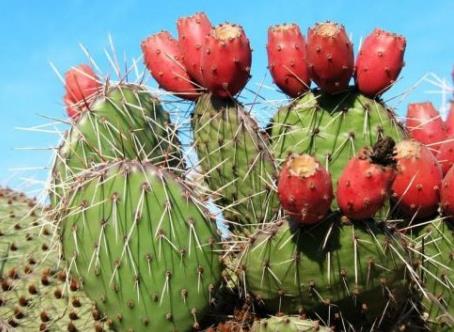 那里坡陡巖高,氣候適宜,上面生長(zhǎng)著如掌狀的仙人掌。