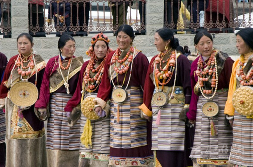 鄉(xiāng)城縣的香巴拉文化有著獨有的個性,“瘋裝”是鄉(xiāng)城三絕之一,在這里可見到盛唐年間遺落的痕跡。至今,這里的藏族姑娘、婦女還穿著文成公主進(jìn)藏時的“瘋裝”,整個服飾五顏六色,絢麗至極。裙子上有108個褶。