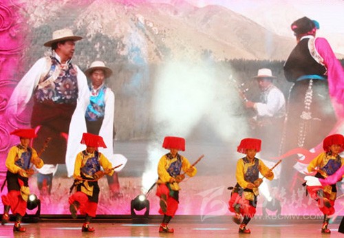 甘孜州地處高原,各縣地域環(huán)境、語言均有差異,且地近內(nèi)地,漢族、彝族、納西族音樂文化也有浸溶,因而民歌體裁、音韻、調(diào)式不全同于其他藏區(qū)。甘孜州的歌和舞,在不同縣之間,甚至同一個縣因山溝、村落不同,也存在較大差異,故呈多姿多彩狀況,藏族民歌極為豐富多彩,兩性相愛有情歌,勞動之時有勞動歌,伐薪、放牧有山歌,新友相聚有酒歌,婚嫁有婚禮歌,勸人勤于耕作有月會歌,還有新房落成歌,游春之時要跳弦子、鍋莊、踢踏舞,還要打“箍箍卦歌”等??傊菬o時不歌,無事不歌,人人能歌善舞,故甘孜州有“歌舞海洋”之美稱。