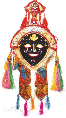 藏戲中,國王的面具是紅色的,代表威嚴(yán);王妃的面具是綠色的,代表柔順;活佛的面具是黃色的,代表吉祥;善者的面具是白色的,代表純潔;女巫的面具是半黑半白,代表兩面三刀的性格;妖魔的面具青面獠牙,以示壓抑和恐怖;老村民的面具用白布或黃布縫制,眼睛、嘴唇處挖一個(gè)窟窿,以示樸實(shí)敦厚。